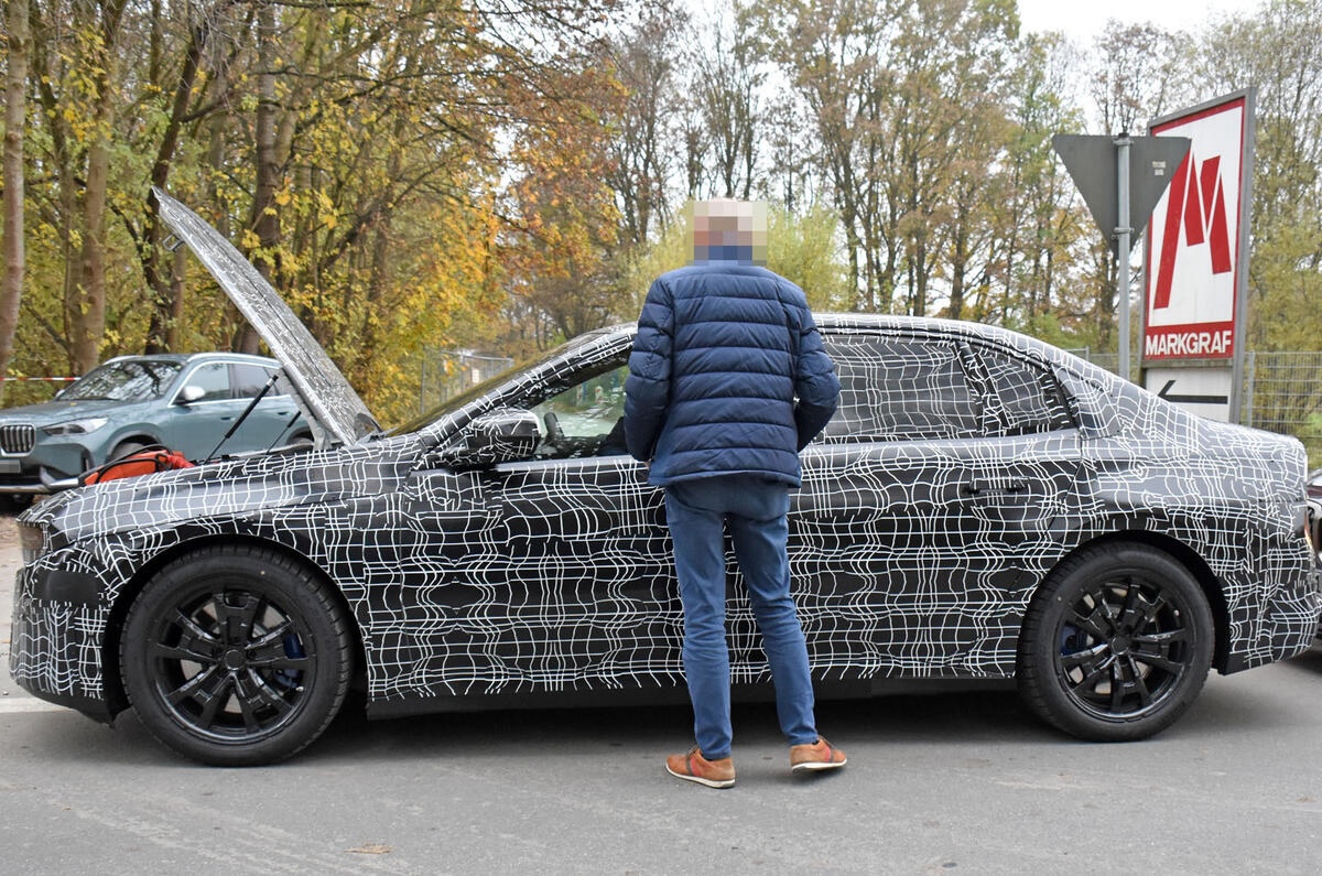 The new i3 also offers practical details like a small trunk (or “frunk”) under the front hood. Along the sides, the car features slightly widened fenders and larger wheels, hinting at a potential future sporty iM3 version. The rear is outfitted with temporary lights, expected to be replaced by sleeker LEDs before production.